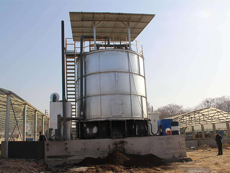 牛粪发酵机器有动力驱动室、罐体、搅拌轴、上料斗、上料架、上料机构、开门机构、卸料门、卸料机构、送风机、温度表、除臭器(选用)、液压系统、电控箱等部件组成。